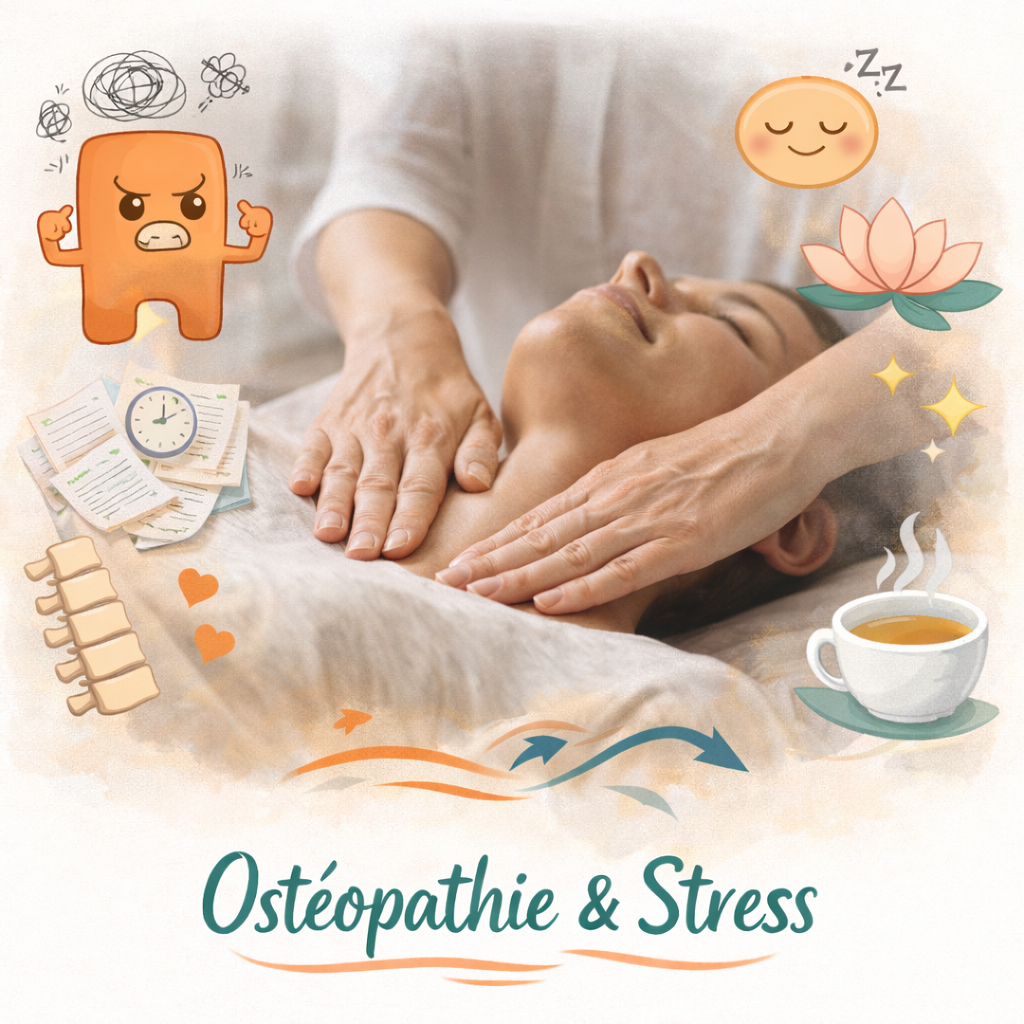 L'ostéopathie peut traiter de nombreux troubles musculo-squelettiques (tms, douleurs de dos, douleurs articulaires), mais aussi des troubles moins évidents comme les maux de tête, le stress ou les troubles digestifs, viséral. Un ostéopathe s'adapte à chaque patient, en fonction de sa situation et de ses besoins.