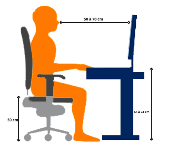 - Idéalement à une distance de 50-70 cm de vos yeux (grossièrement asseyiez vous sur votre chaise et tendez le bras, placez l'écran derrière cette distance)